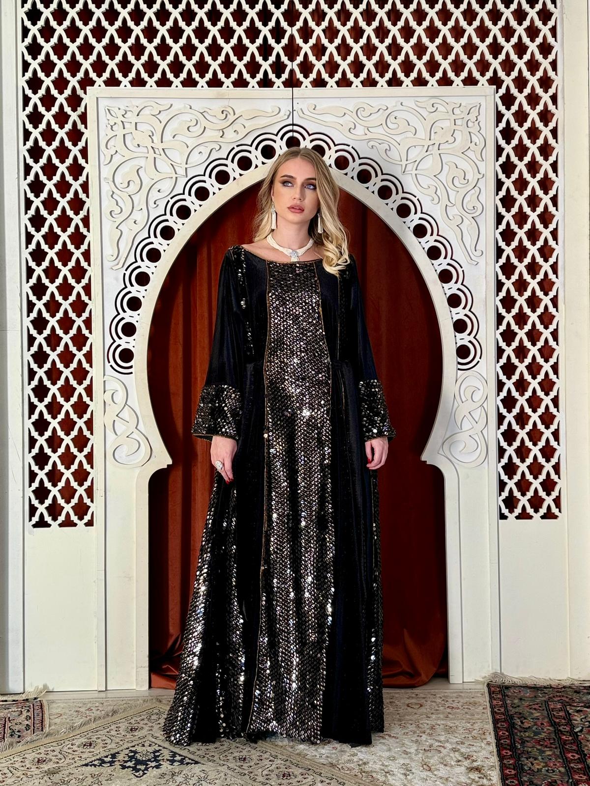 Velvet sequin Kaftan- black