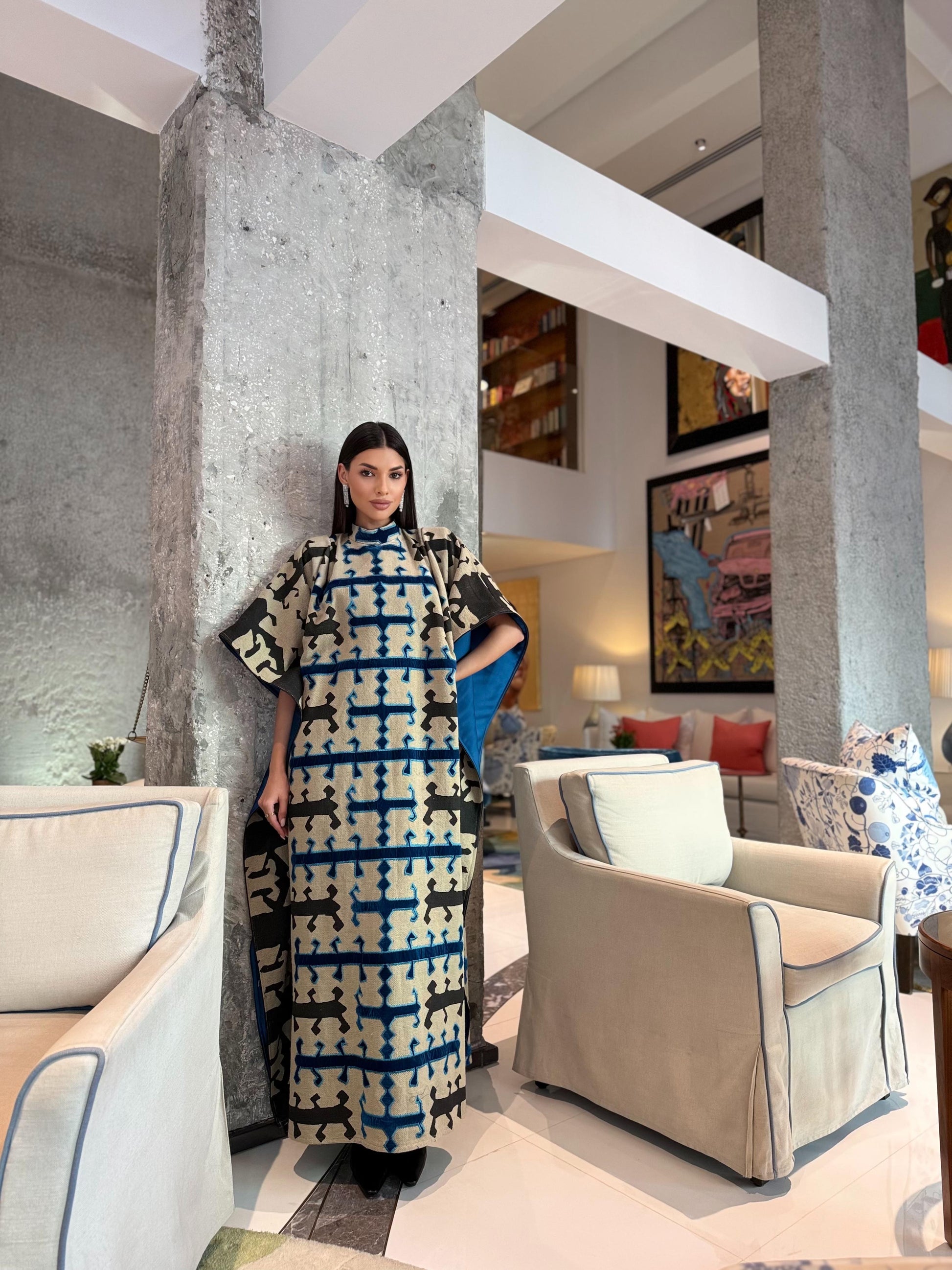 Heavy winter Kaftan with velvet details and Sattan lining.