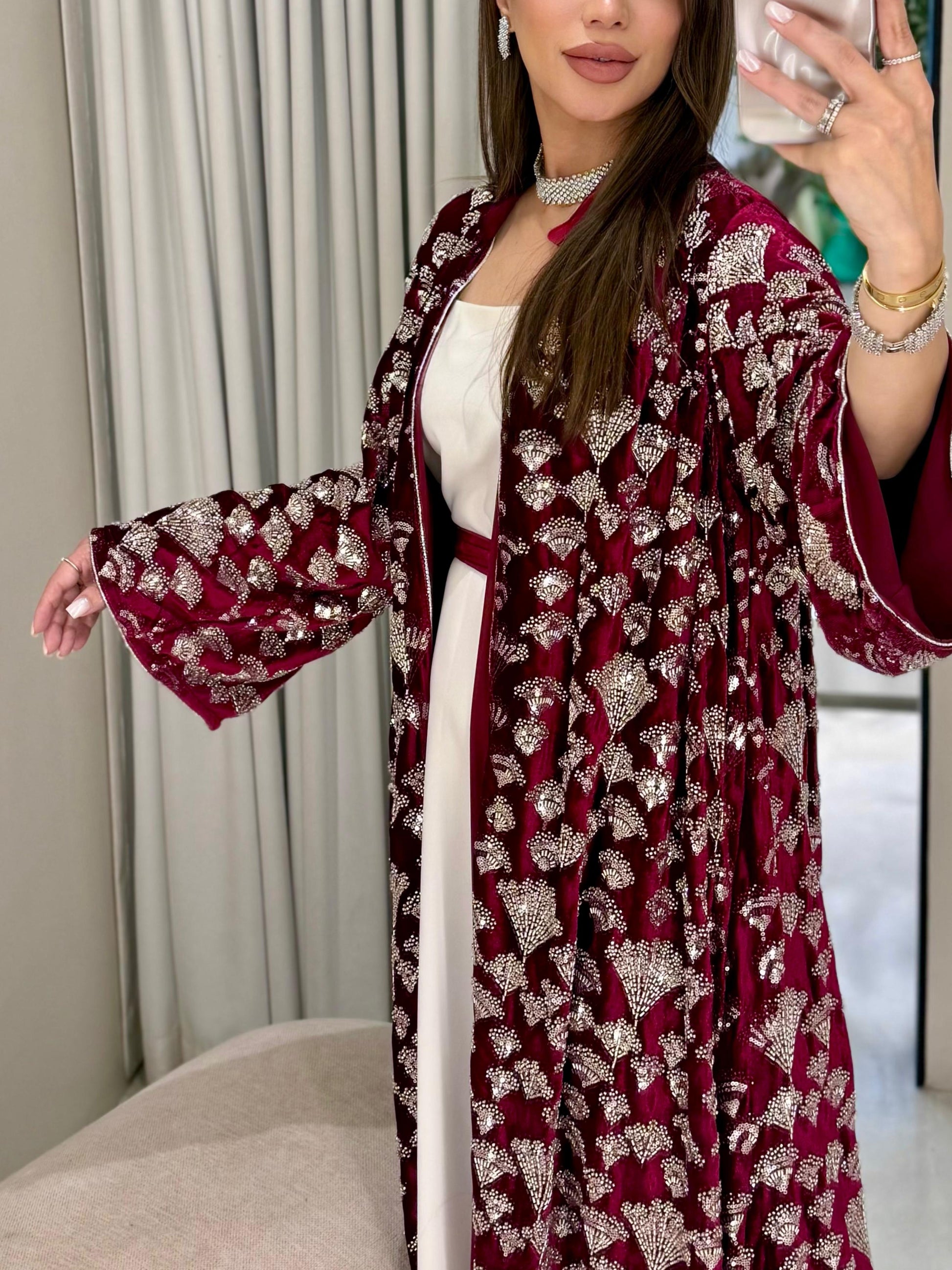 Velvet Bisht - Red x silver Embellishments